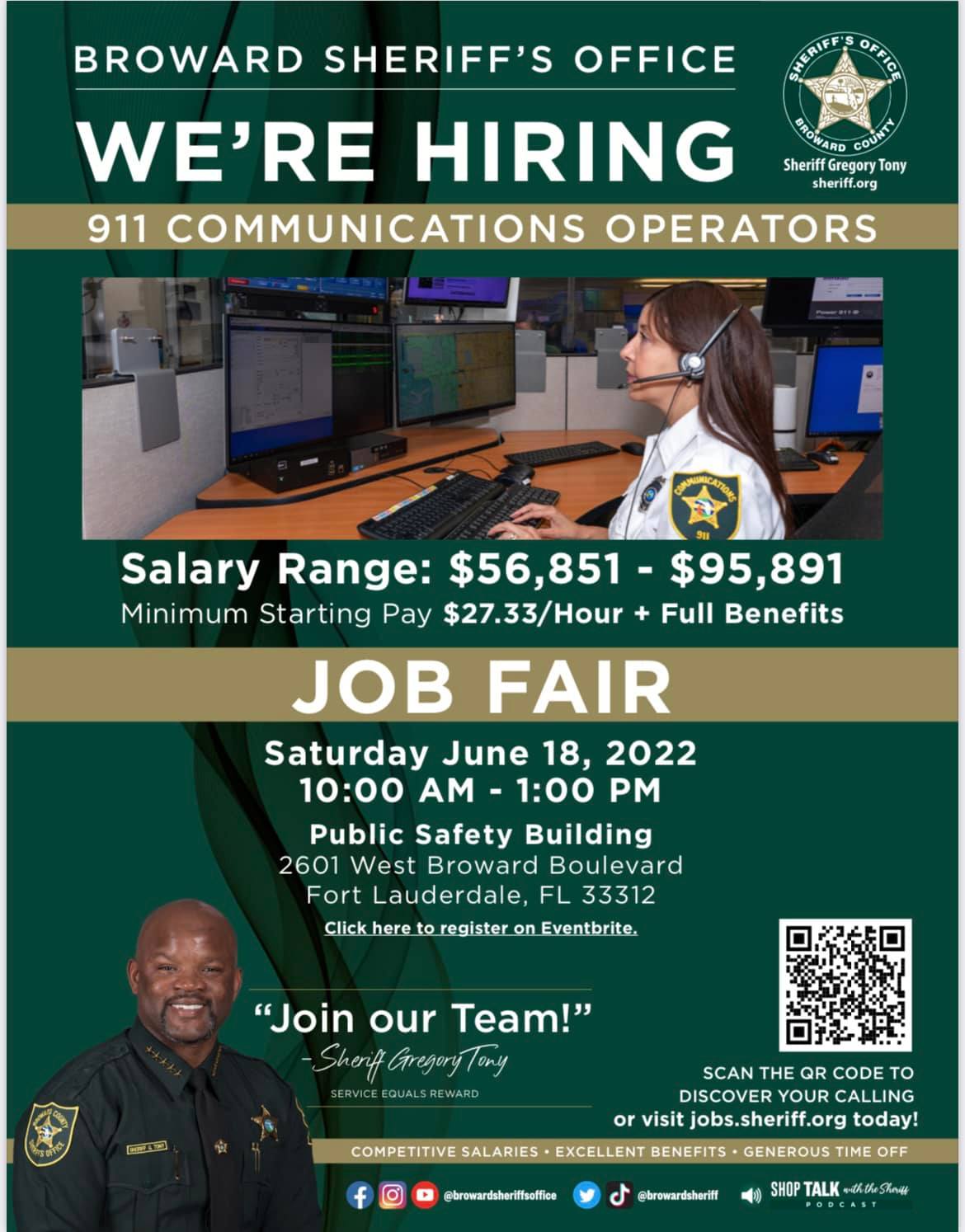 Broward Sheriff On Twitter We Re Hiring Join Teambso Click The Link Below To Register For The Communications Operators Job Fair This Saturday Https T Co T3vvxgzgyx Jobfair Teambso Publicsafety Browardcounty Browardjobs Bso Lawenforcement